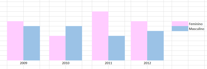 Boa tarde, não consigo achar uma solução para plotar um gráfico em barras com os dados: dados <- data.frame ( ano = c(2017,2016,2015,2014,2013,2012,2011,2010,2009,2017,2016,2015,2014,2013,2012,2011,2010,2009),total = c(2159,5513,3679,2083,1852,2328,2084,4071,1525,2031,4796,3088,1647,1332,1475,1282,506,1232), sexo = c("Feminino","Feminino","Feminino","Feminino","Feminino","Feminino","Feminino","Feminino","Feminino","Masculino","Masculino","Masculino","Masculino","Masculino","Masculino","Masculino","Masculino","Masculino")) o gráfico deveria ficar mais ou menos assim (imagem somente ilustrativa, não esta de acordo com os dados: Alguém pode me dar uma força ?